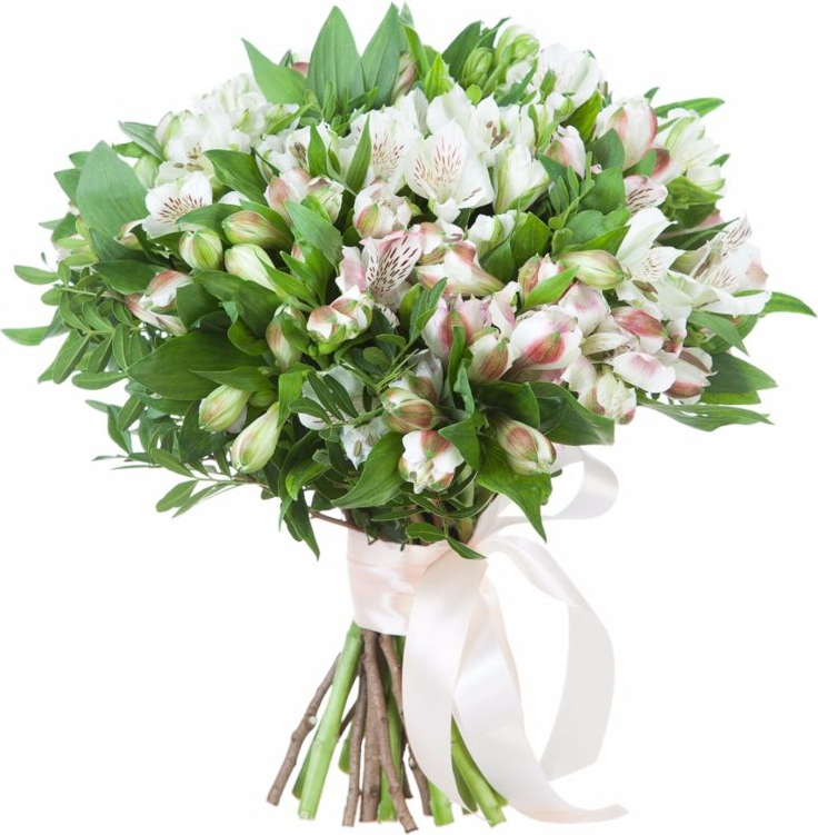 Изысканный букет из восхитительных, нежных белых альстромерий с уверенностью можно назвать универсальным подарком, который можно смело дарить и мужчинам, и женщинам, детям и пожилым людям, а также деловым партнерам, коллегам и начальству. Букет из белых альстромерий будет говорить о вашей искренности в отношении к человеку, чистоте чувств, честности  и готовности к долгому и плодотворному сотрудничеству.